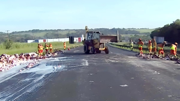 Caminhão carregado com leite tomba na Anhanguera, ...